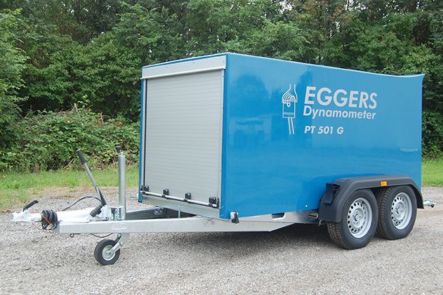 In general, the new EGGERS dynamometer works like the proven models on the principle that both - the torque and the rotational speed are measured separately. The generator used to load the engine is therefore provided with a torque measuring hub. This torque measuring hub measures the resulting Torque, a speed sensor senses the revolutions per minute. From these exactly measured values, the control electronics calculates the performance of the test object according to the power formula*. Inaccuracy factors such as constantly changing efficiencies of the generator are eliminated, because this brake medium has only the task to load the engine – but is basically not used for power measurement. This measurement method is physically sound and internationally recognized.